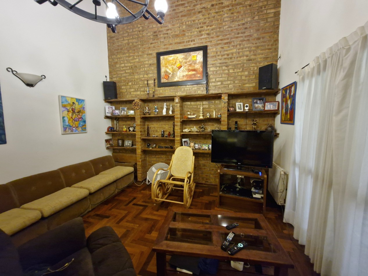 Planta Baja: Hall, oficina, living comedor, cocina comedor, lavadero, baño completo, galería semicubierta con parrilla, entrada/garaje semicubierto para 2 vehículos, y gran parque trasero con salida a calle Leguizamón.