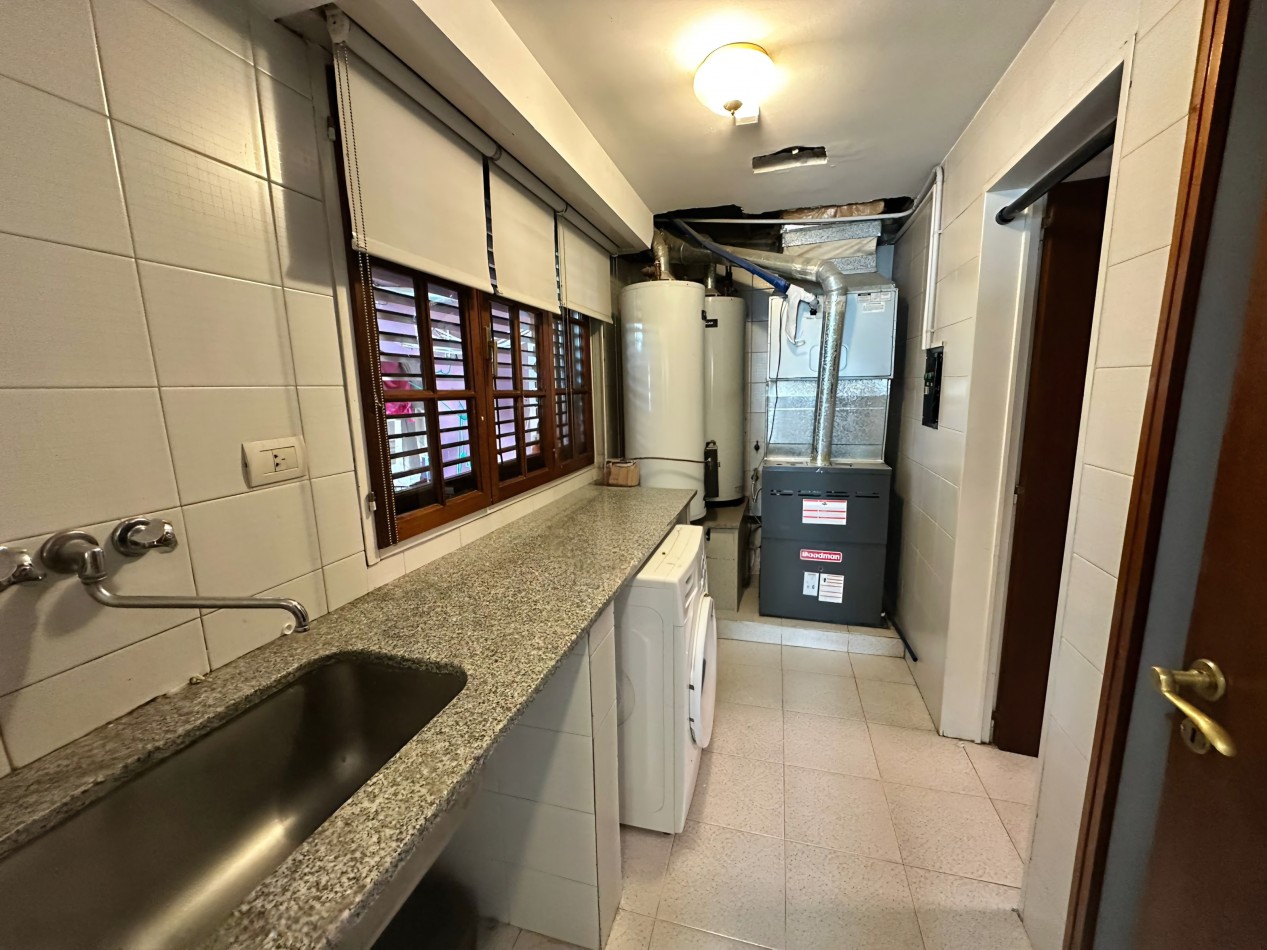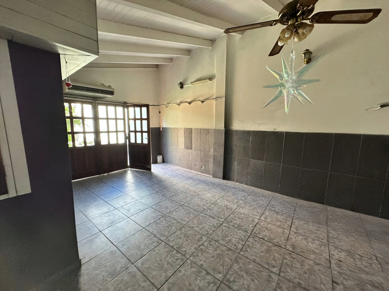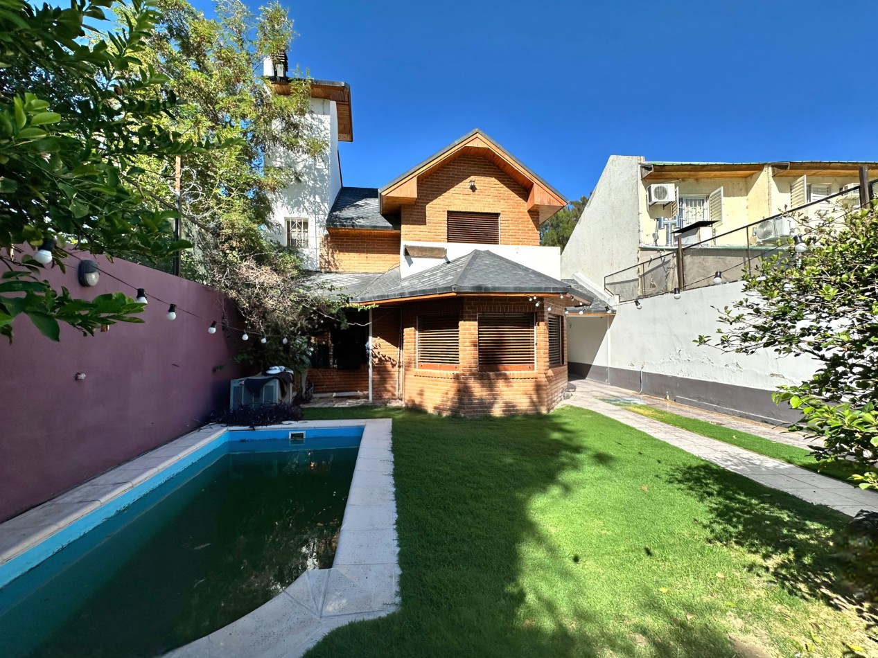Planta Baja: Living comedor, cocina comedor, lavadero independiente, habitación de servicio con baño, patio interno, quincho con parrilla, baño completo y garaje cubierto. Patio con pileta climatizada.