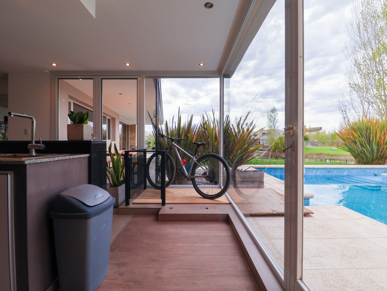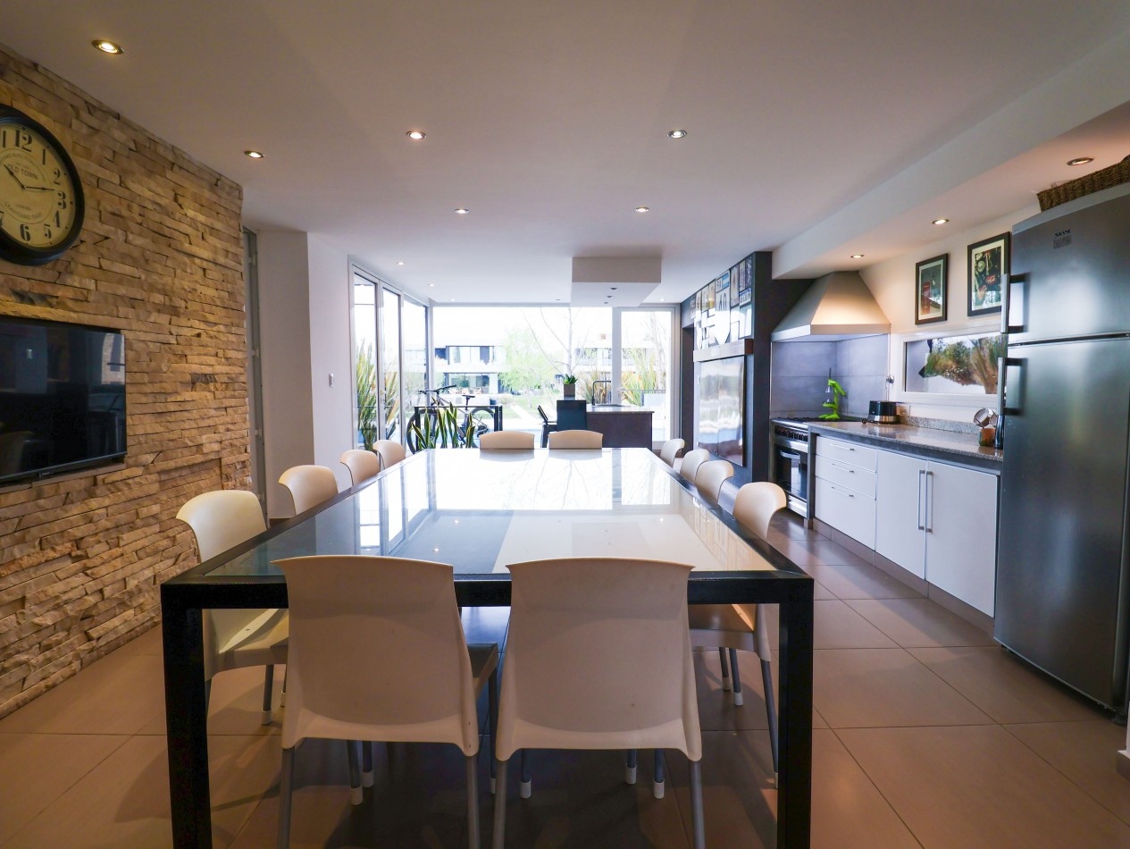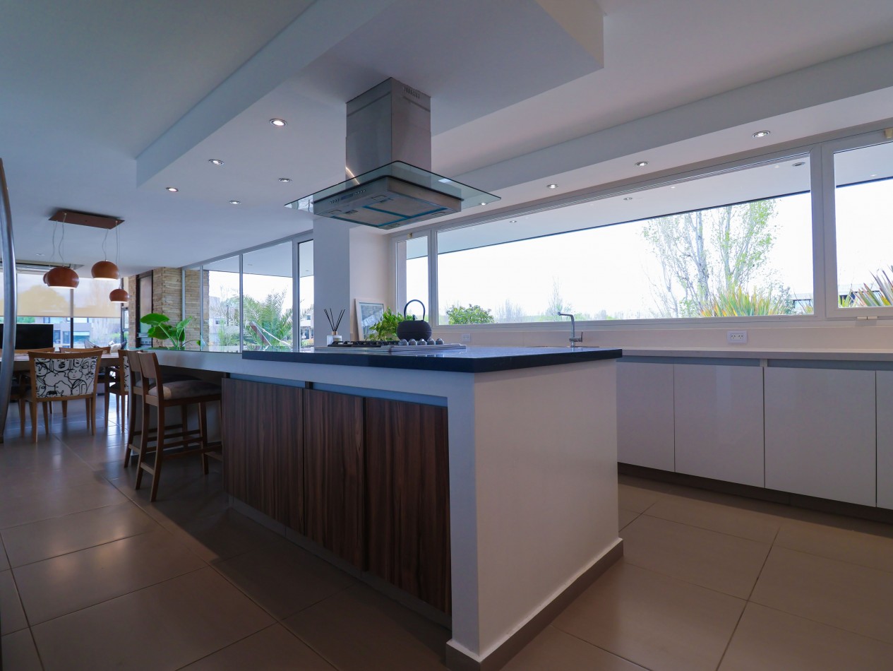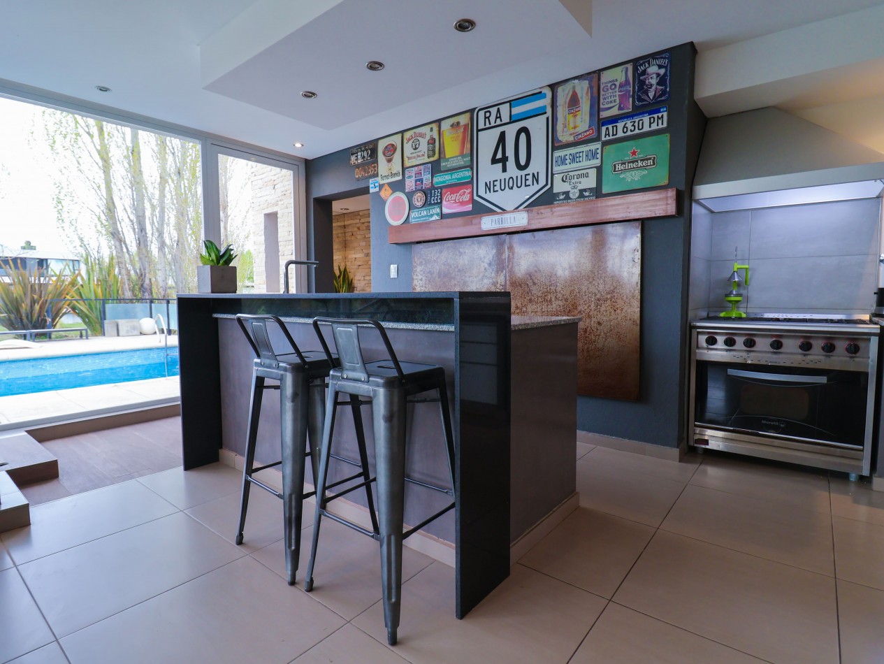 Exteriores: Jardín trasero con asador, pileta climatizada y amplia cochera para 2 vehículos.