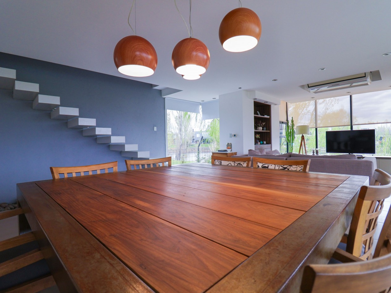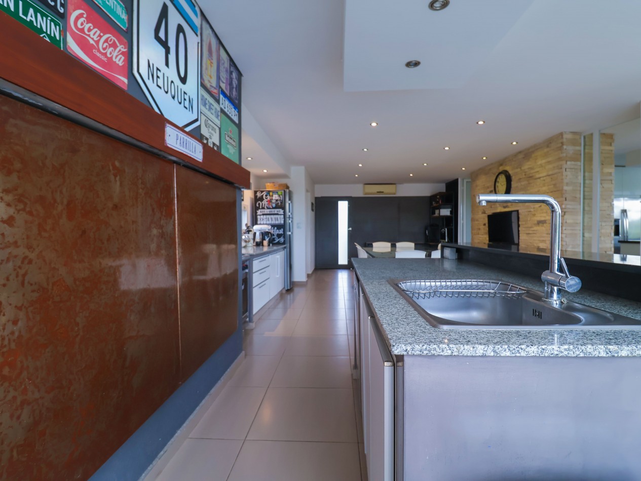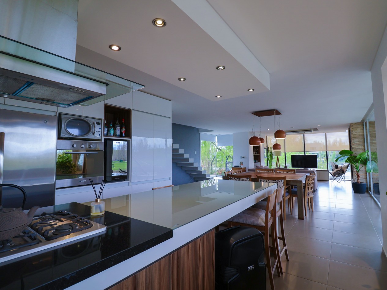 Exteriores: Jardín trasero con asador, pileta climatizada y amplia cochera para 2 vehículos.