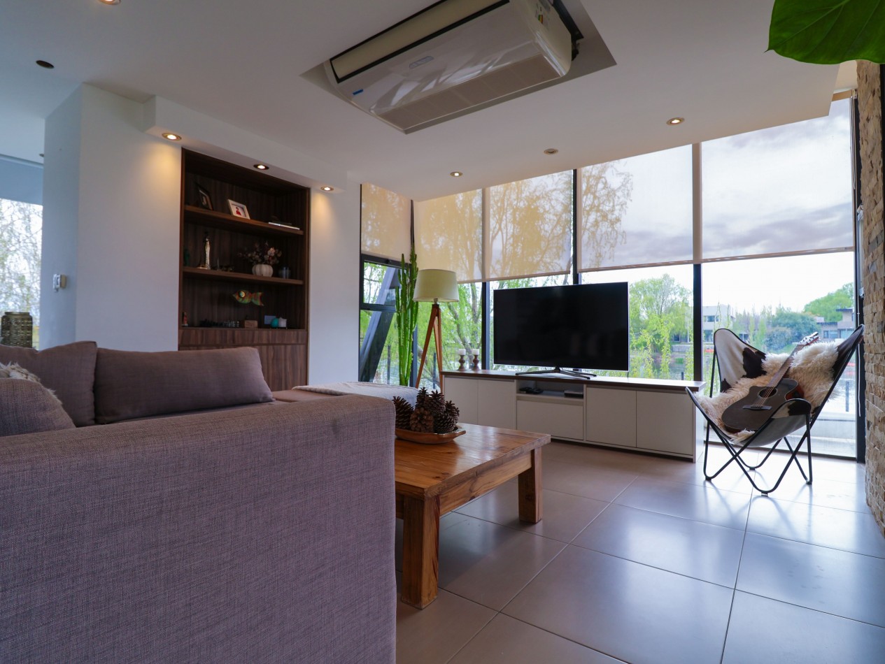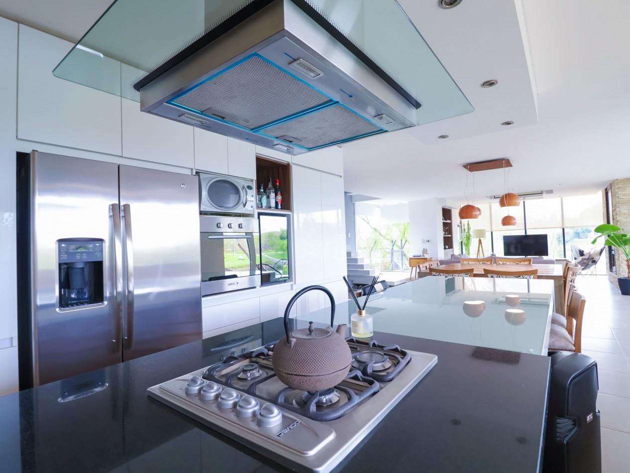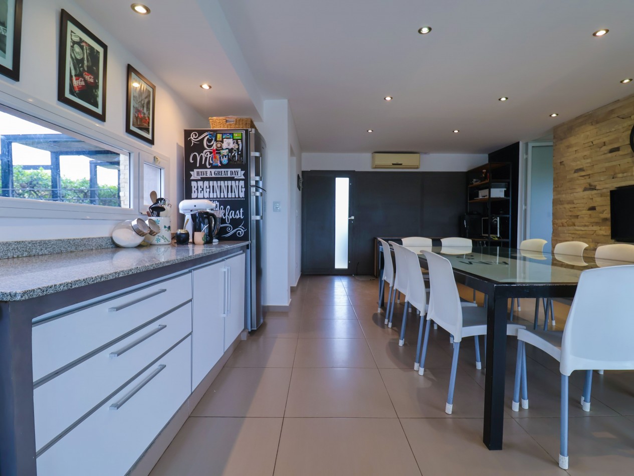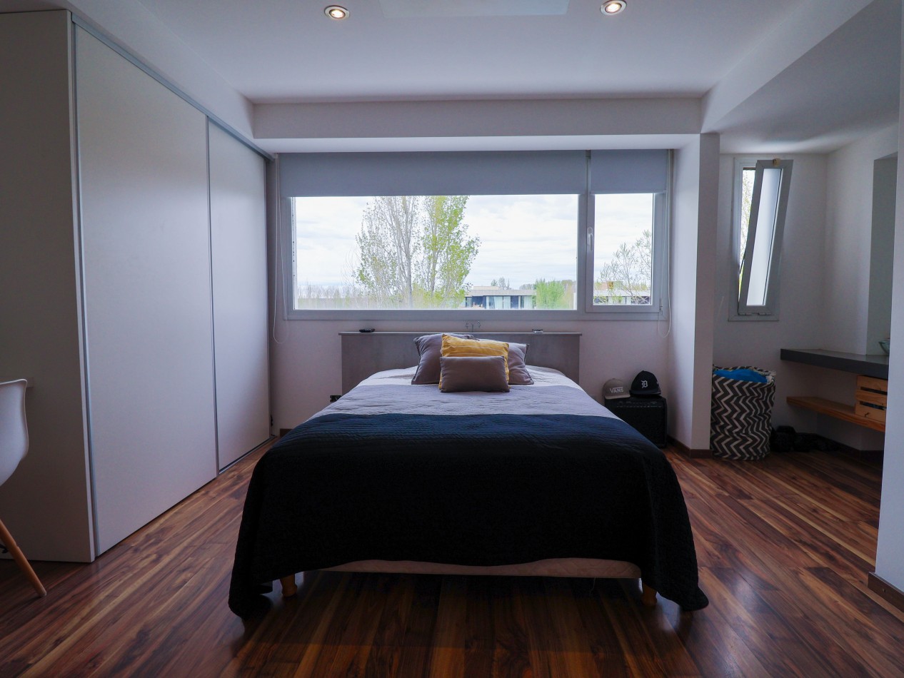 Exteriores: Jardín trasero con asador, pileta climatizada y amplia cochera para 2 vehículos.
