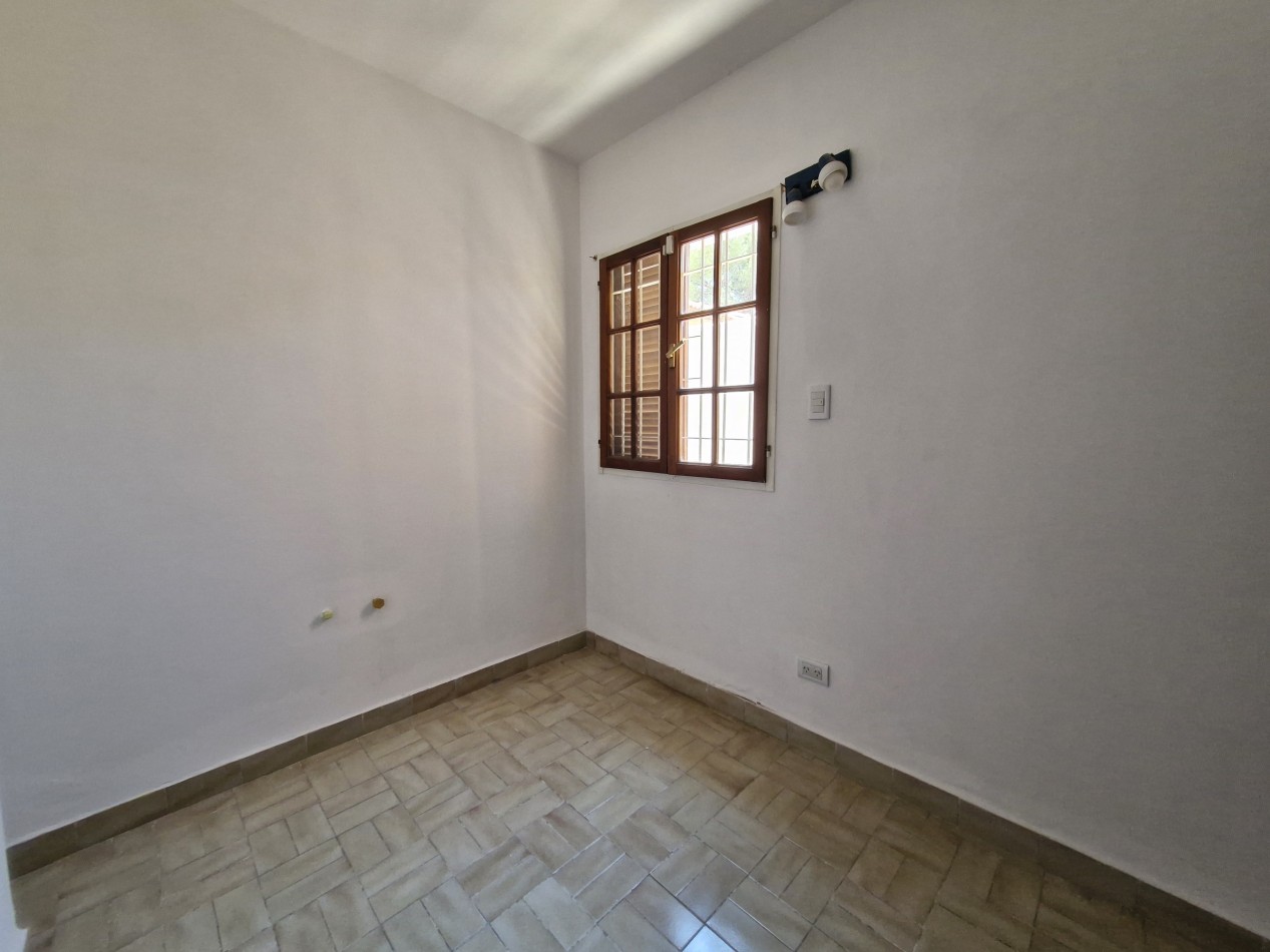 Casa principal, distribuida totalmente en planta baja. Living comedor amplio, cocina comedor, baño completo, 3 dormitorios con placares. Patio seco y amplio jardín. Garaje semicubierto.