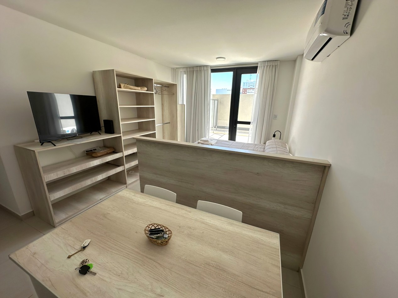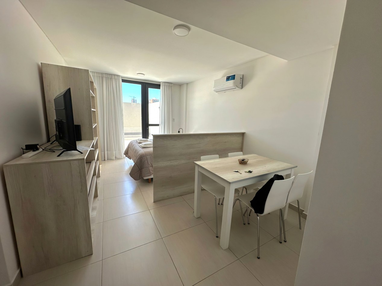 SKY REAL ESTATE – VENDE – Espléndido monoambiente completamente amoblado con terraza propia, en Santiago del Estero 115, Centro de Neuquén.